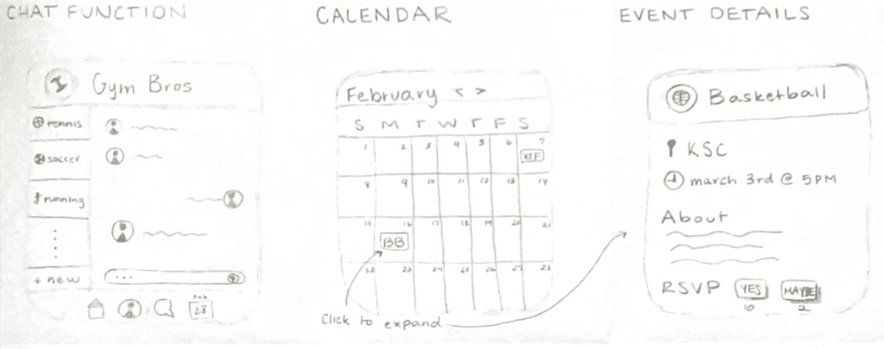 To begin, we conducted interviews to get a sense of how users felt about sporting events on campus, their general attitude towards physical activity, and things they would want to see in the future in this realm.
