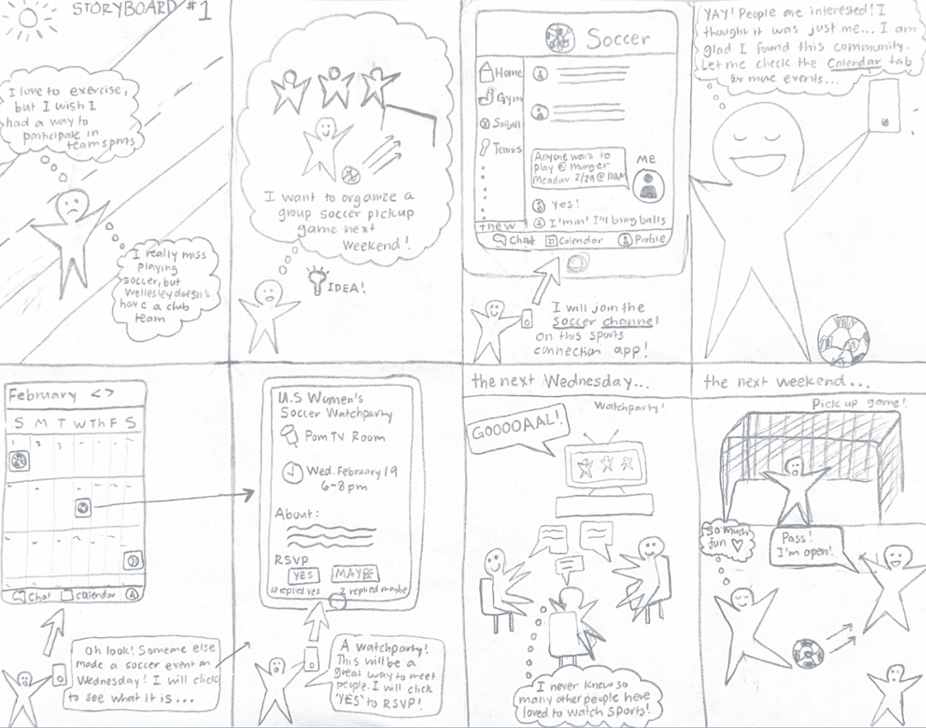 Through user analysis, we found that there was low general morale to attend games, so we widened our target audience to not just sports fans, but also those interested in simply getting active at Wellesley.